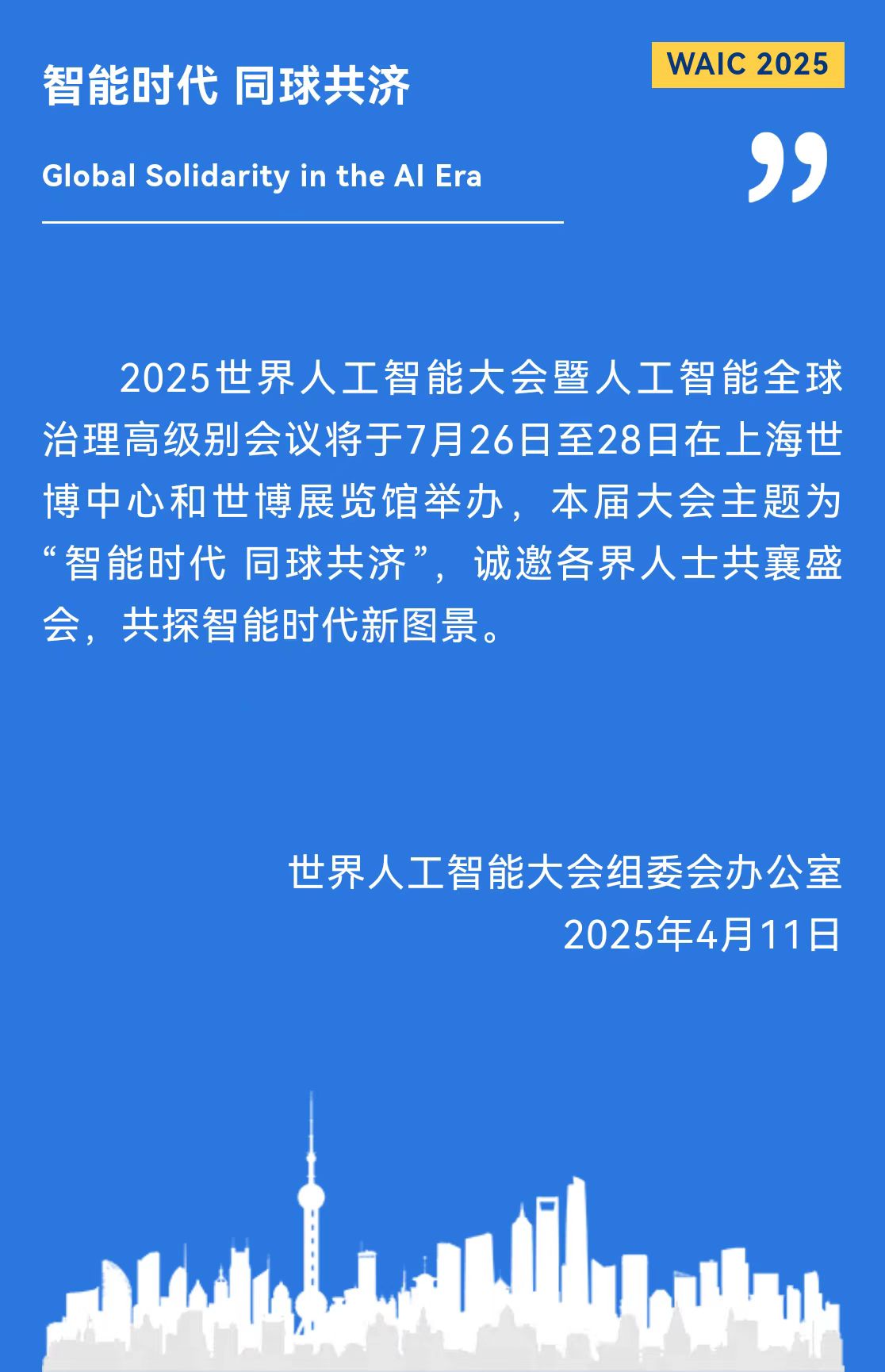 官宣!2025世界人工智能大会暨人工智能全球治理高级别会议定档