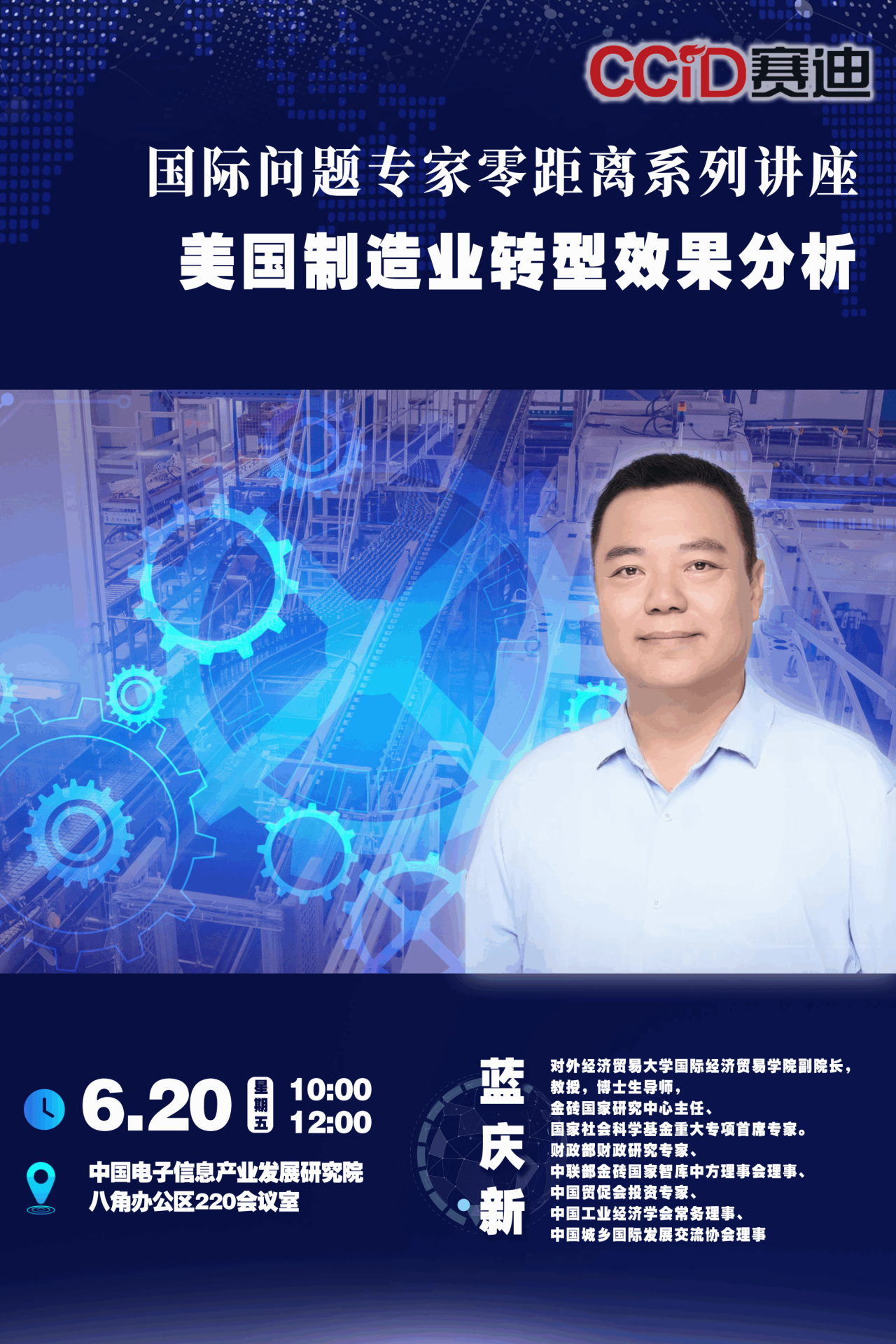 赛迪研究院举办国际问题专家零距离系列讲座第一讲发表时间:2025-07-09 09:16来源:世界工业研究所 2025年6月20日,中国电子信息产业发展研究院(赛迪研究院)成功举办“国际问题专家零距离系列讲座第一讲”,对外经济贸易大学国际经济贸易学院副院长蓝庆新教授受邀围绕“美国制造业回流效果分析与启示”主题展开深度研讨。赛迪研究院副总工程师孙远航主持会议,世界工业研究所(国际合作研究中心)、新型工业化研究所、中小企业研究所等部门负责人与研究人员参与此次活动。