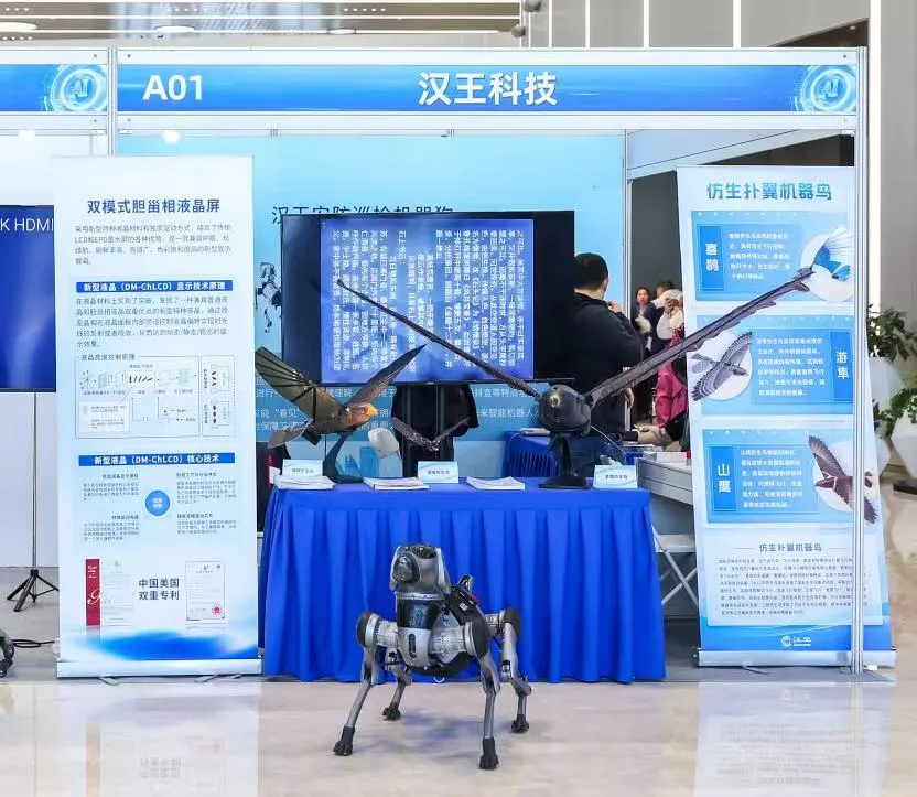 对投资机构而言,这种表述释放出一个更现实的信号:这不是“概念融资”,而更像是进入规模化阶段前的产业化加速——尤其需要能“带资金、带资源、带场景”的合伙人,帮助项目在量产、渠道、认证合规、交付运营等环节加速奔跑(资本的作用不再是“讲故事”,而是“推曲线”)。 三大重点项目“开门迎合伙人”:要的是加速度 本次论坛上,汉王重点展示并对外开放三类项目:具身智能的仿生扑翼机器鸟、大健康方向的柯氏音医用电子血压计,以及面向新型显示赛道的双模式胆甾相液晶屏。